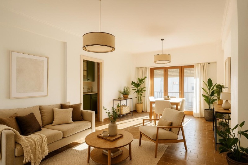 Estar comedor con balcón francés.
