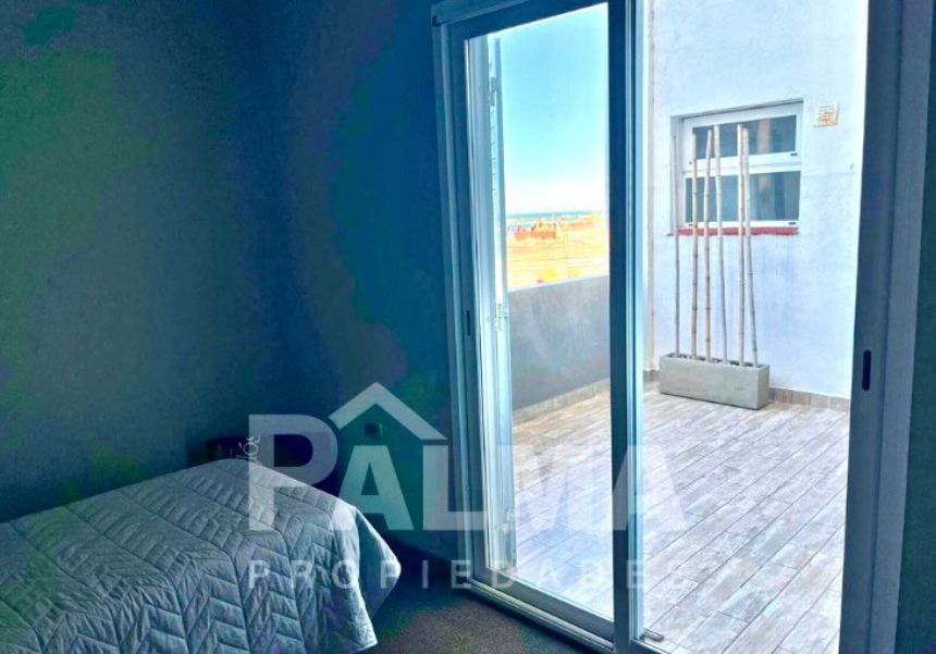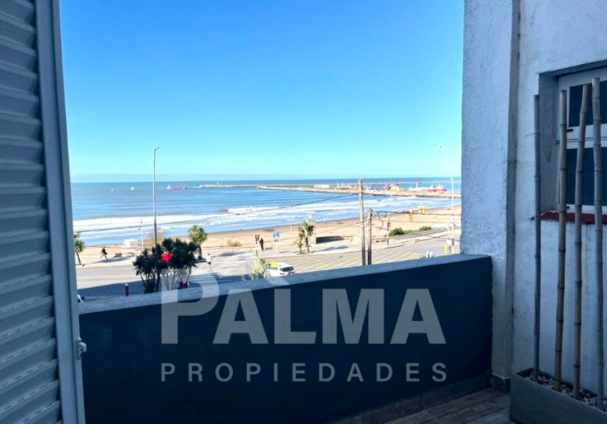 Departamento de tres ambientes lateral, con patio y terraza con vista al mar, totalmente reciclado a nuevo.