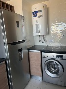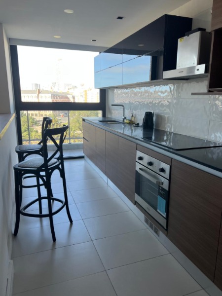 La cocina se encuentra semi integrada e incluye lavavajilla y cocina y anafe a gas. Cuenta con toilette de recepción, lavadero independiente con salida a un segundo balcón.