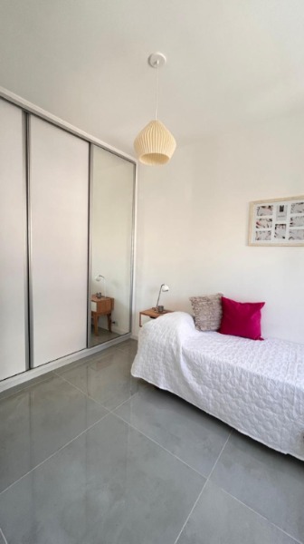 La unidad cuenta con dos dormitorios, ambos con vista al jardín interno. El dormitorio principal es en suite y se suma un baño completo para mayor comodidad.