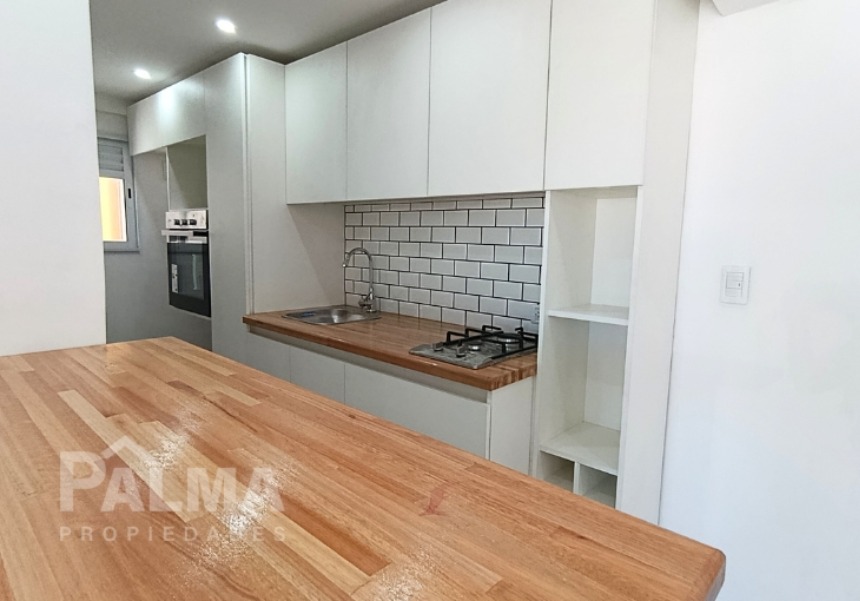 Se compone de un amplio living comedor con un gran ventanal y excelente ingreso de luz natural durante todo el día. La cocina se encuentra semi integrada por una barra desayunadora, incluye horno eléctrico y anafe a gas empotrados en la mesada. Posee espacio para Lavarropas y espacio para microondas. Un dormitorio luminoso con placard empotrado. Baño completo.