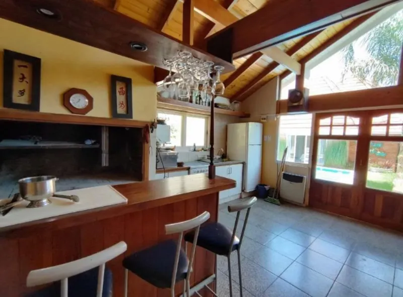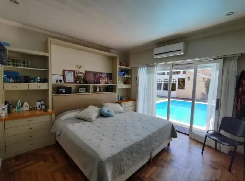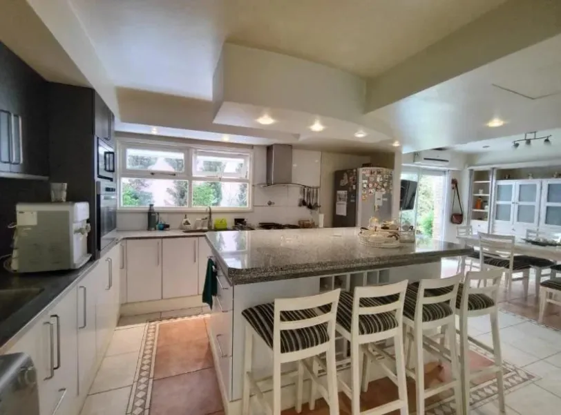 En el exterior, cuenta con parque con pileta climatizada, quincho con baño, trotadora para dos autos y garage pasante para tres.