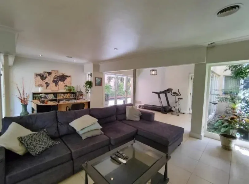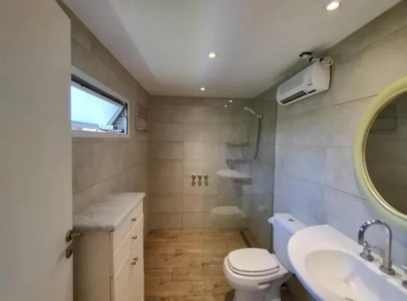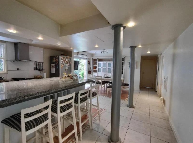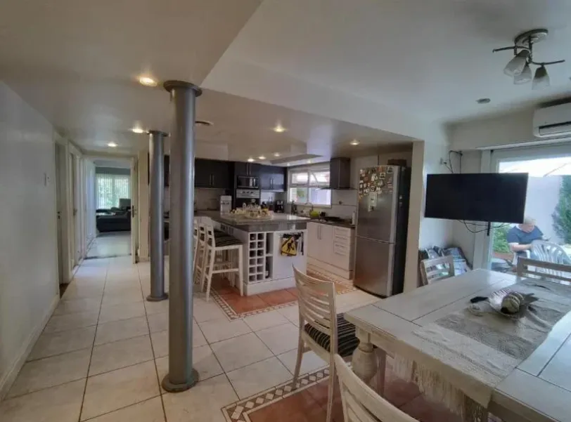 En planta baja la casa cuenta con un amplio living comedor, cocina moderna con isla y comedor diario. Dos dormitorios en suite con baño completo y un baño completo adicional. Además cuenta con un jardín de invierno, un espacio único que integra el verde al interior de la casa.