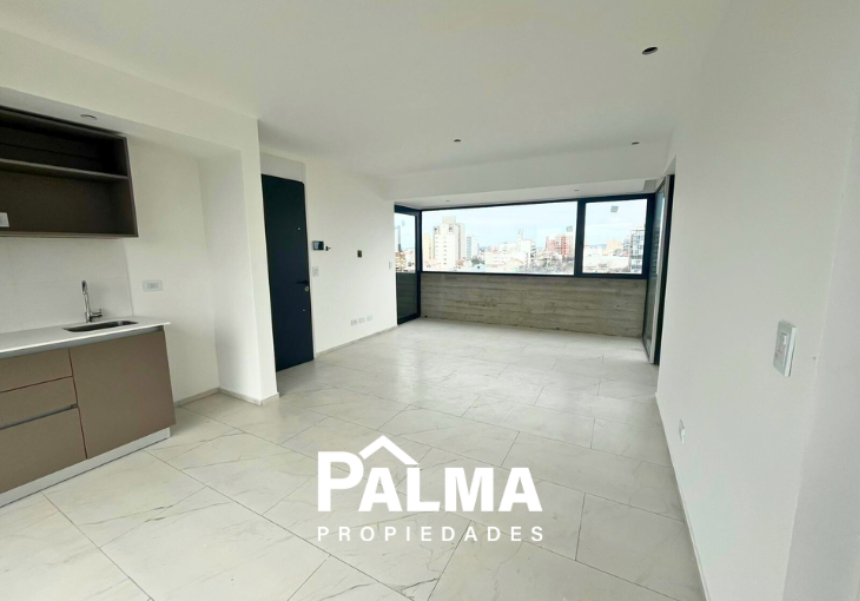 Departamento a estrenar de dos ambientes al frente con balcón, con vistas abiertas a la ciudad y cochera fija descubierta.