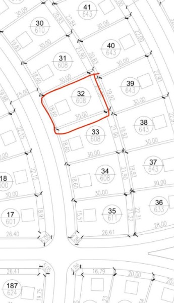 Se trata del lote N° 32 con una superficie aproximada de 608 metros. Con 18.60m de frente y 30m de fondo.